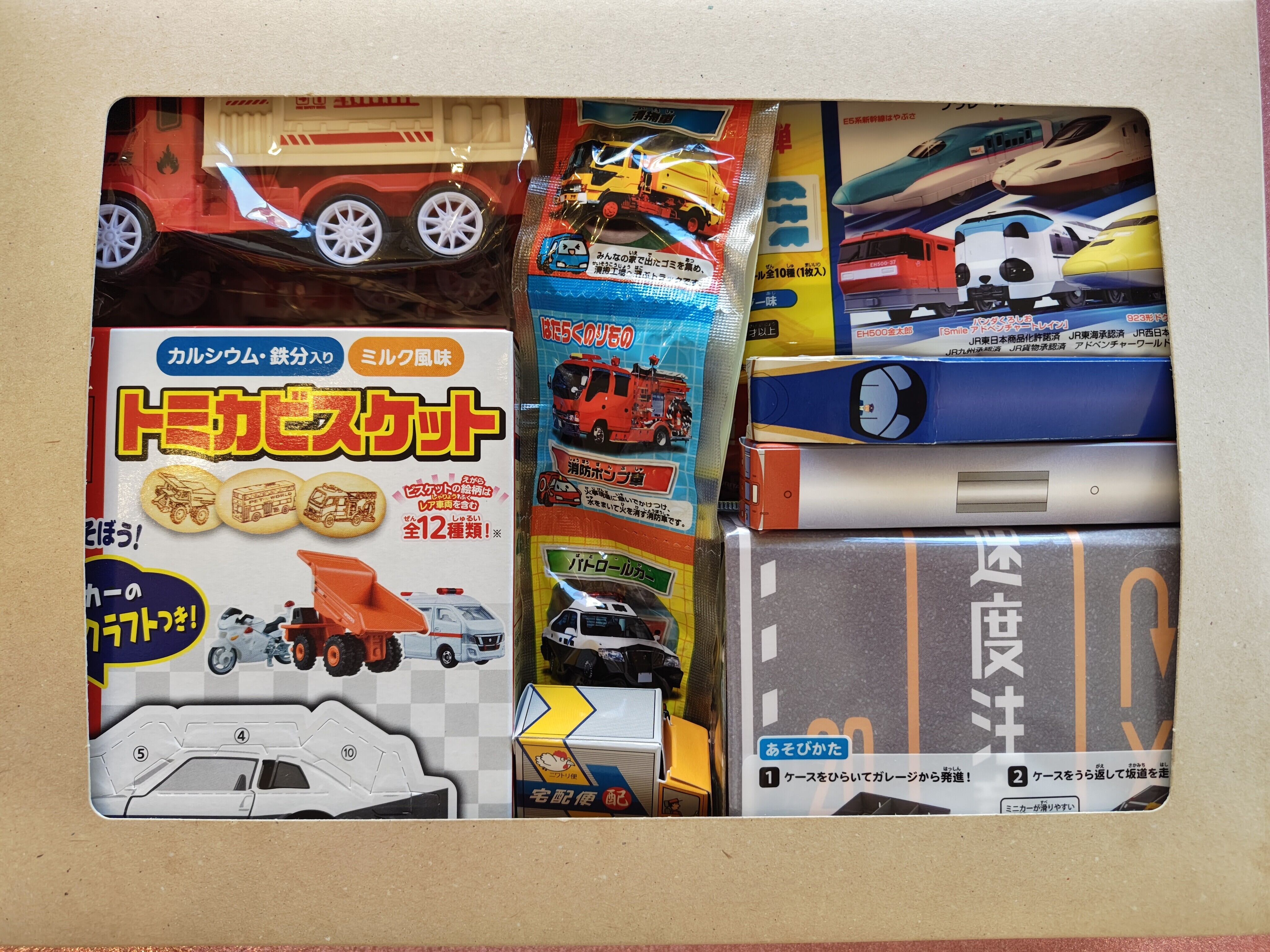 乗り物好きなお子様の為に、お菓子や雑貨をセレクトしてお届けします。